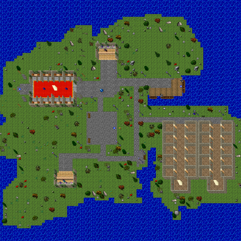 The island features a Depot, houses, and NPCs that sell Blank Runes and all types of Mana Fluids. |