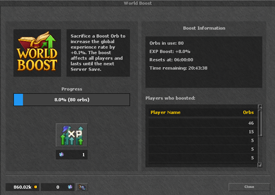 To activate it, players must send Experience Boost Orbs through the in-game module.